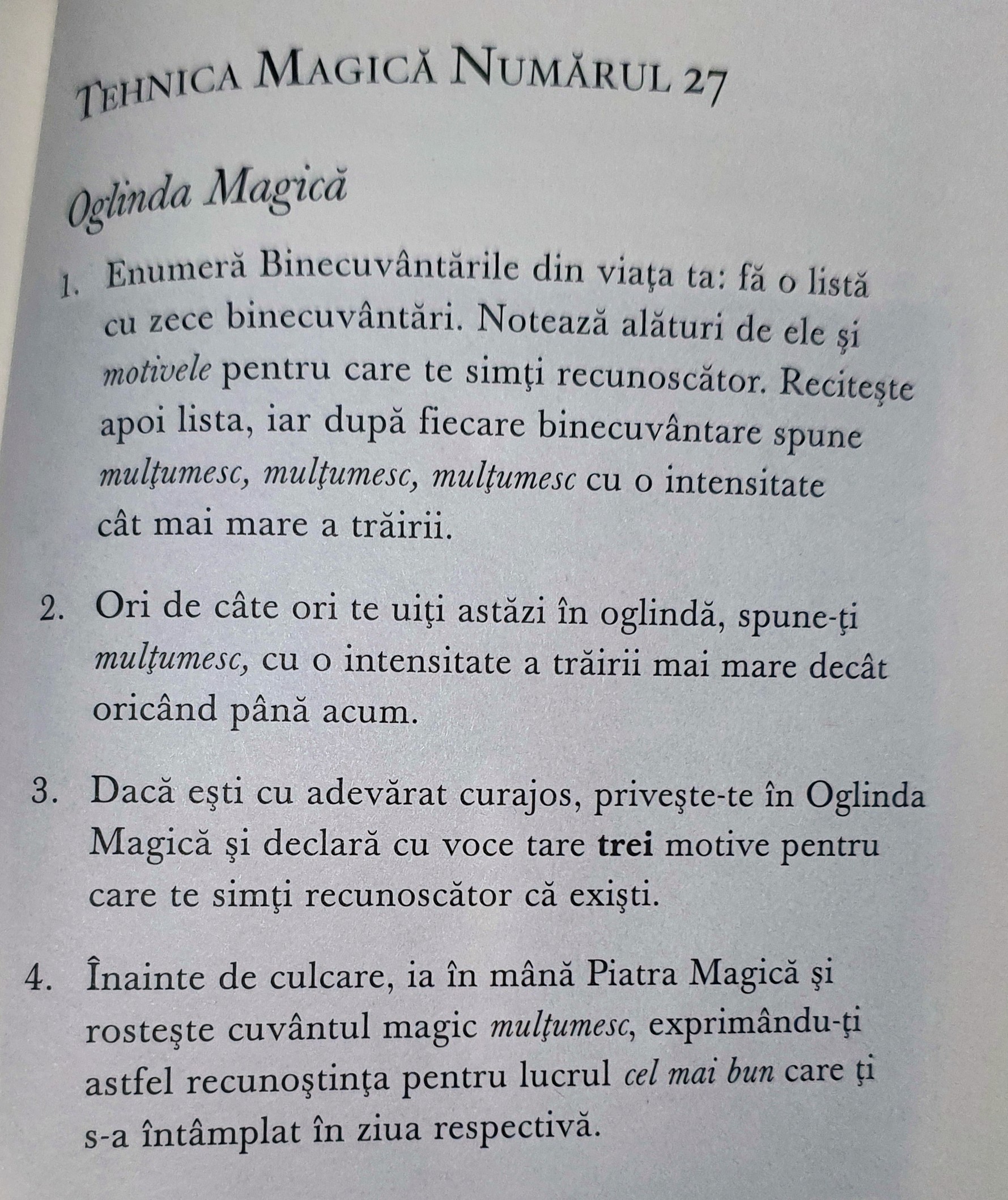 După ce am parcurs de câteva ori acest program, printre multele beneficii și schimbări absolut magice, am rămas cu câteva deprinderi pe care le aplic zilnic. Binecuvântările de dimineață, în fiecare dimineață (pe care le zic fie în sinea mea, fie cu voce tare 😁), semnalele la care sunt atentă în cursul zilei, praf magic presărat peste oamenii din jurul meu, praf magic peste mâncare și băutură, recunoștință pentru soluții și rezultate magice, recunoștință pentru învățăturile pe care le primesc din interacțiunile cu alți oameni, recunoștință pentru cel mai bun lucru care s-a petrecut în cursul zilei. 🥰 Ar mai fi câteva obiceiuri pe care le-am deprins în urma acestui program magic și pe care le practic ca pe un mod de viață; este starea mea de „normal”, să le fac pe toate acestea. 😚